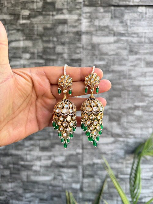 Rukhma Polki Chandbali - Emerald